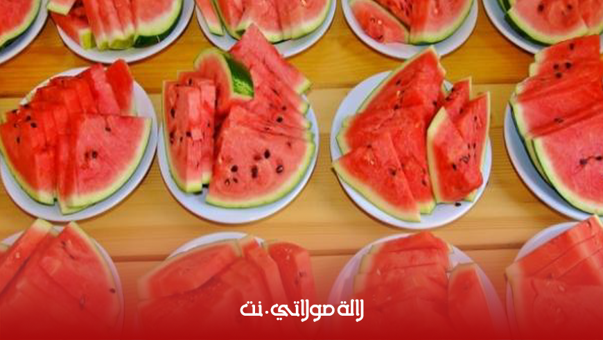 وتواجه الرجال حول طاولة واحدة وأمام كل واحد منهم 8 بطيخات كان عليه أكلها.