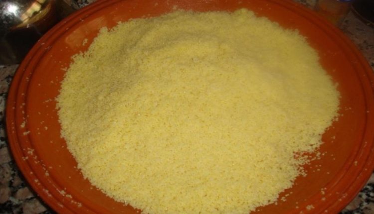 • ثم نقوم بوضع الكسكس في القصعة ثم نصب عليه ماء مغلي بدلا من الماء البارد ونتركه مدة 10 دقائق يتشرب الماء ثم نضعه في الكسكاس مرة أخرى، وبعد 30 دقيقة نصبه مرة أخرى ونرشه بزيت الزيتون ثم نقدم بالصحة والراحة إذ يصبح جاهزا ومطهوا بشكل جيد.
