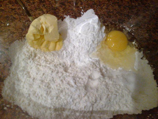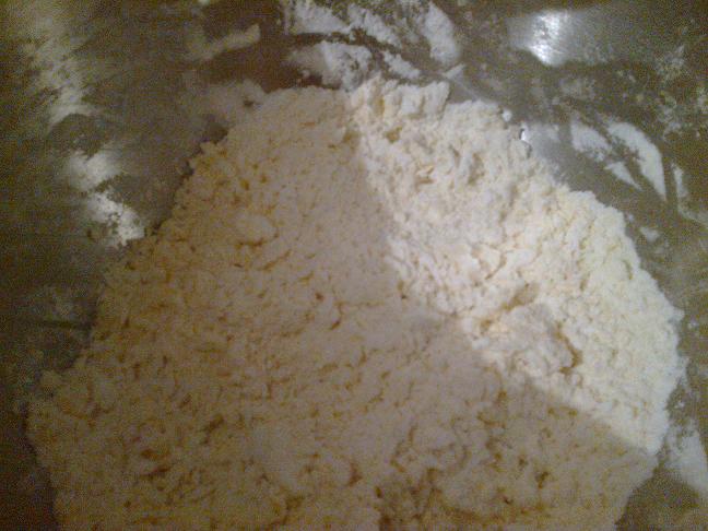 - كنخلطو ميزينا مع الطحين ونخلط كلشي حتى تترمل العجينة شوية