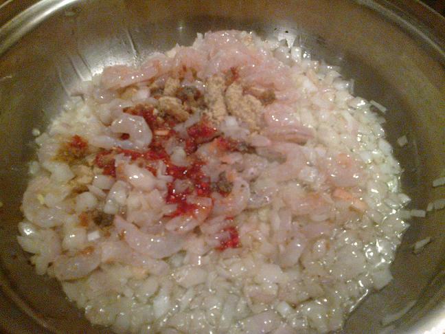 - في هاد الوقت كنشحرو البصلة مع شوية الزيت حتى تدبال شوية ونضيفو الكروفيت والملح والعطرية والهريسة