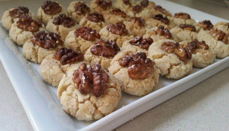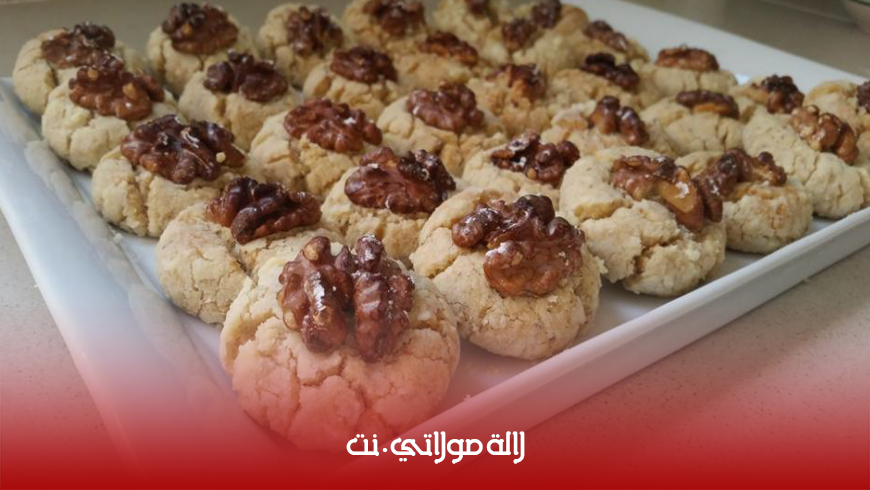 - نشكل من العجين كويرات تمرر في سكر بودرة وتضع فوقها نصف حبة كركاعة وتصفف في طاوة وتدخل لفرن ساخن حتى تشقق كلها وتأخذ اللون الذهبي وبالصحة والراحة