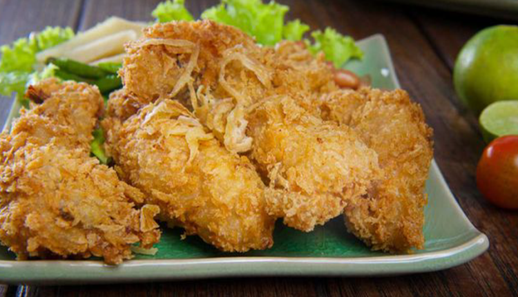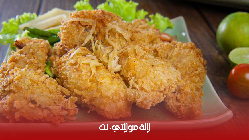 - نغمس قطع الدجاج فى خليط البيض ثم فى الخليط الجاف و نقليهم فى الزيت كثير علي نار هادئة حتي يصبح ذهبي لونهم