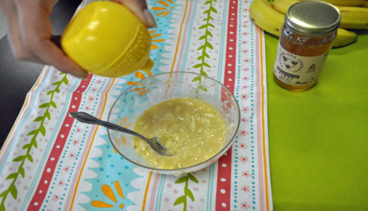 • المكونات : موزة+دبس التمر+عسل النحل اختياري+كبسولة فيتامين e