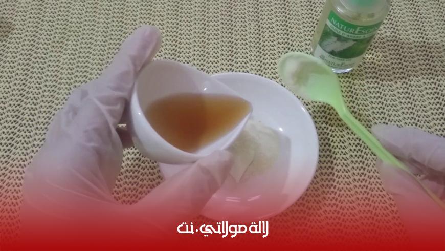 • المكونات :ملعقة من العسل الطبيعي+ملعقة من بيكاربونات الصودا+ملعقة من عصير الليمون+ملعقة من دقيق الذرة
