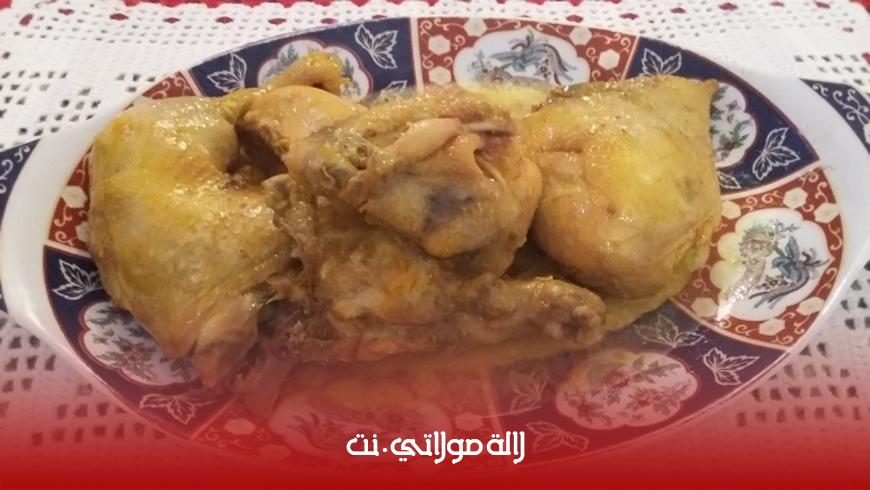 • طريقة التحضير : نشرمل الدجاج بواسطة الكمون و الابزار و الزعفران الحر بعد ذلك نضع بقية المقادير(كنور + الثوم + نصف حامضة مصيرة + نصف كأس زيت الزيتون وزيت المائدة) مع الدجاج المشرمل في الكوكوط مع الماء ونقفل الطنجرة ونترك الكل يطهىو يقدم ساخنا بالصحة و الراحة.