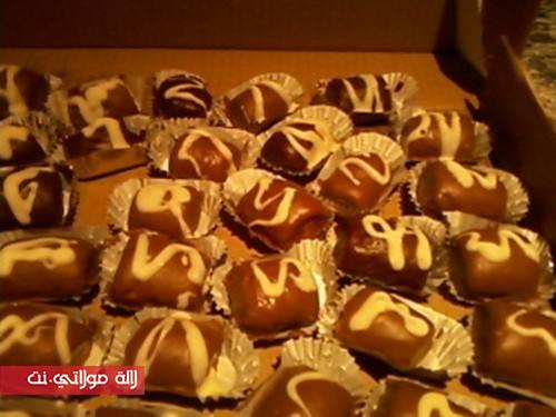 نحربلوهة طويلة و- رقيقة بزاف حيت منين كطيب كتزيد ثم نقطعها بسكين حاد و- ندخلها الفران منين تبرد نديرها في شيكولا أسود ونحتوهة فلكويغطت ثم نزينوهة شيكولا أبيض من الفوق.