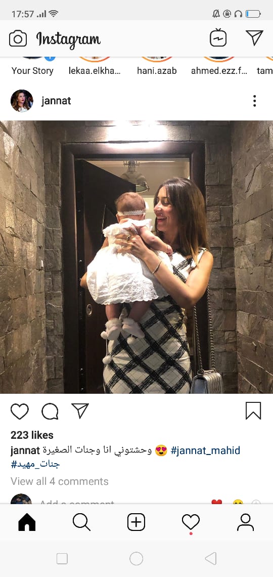 نشرت الفنانة المغربية جنات صورة لها مع ابنتها الرضيعة التي تحمل نفس اسمها لأول مرة، وعلقت عليها بالقول: “وحشتوني أنا وجنات الصغيرة”.