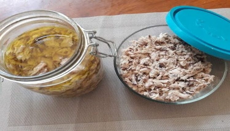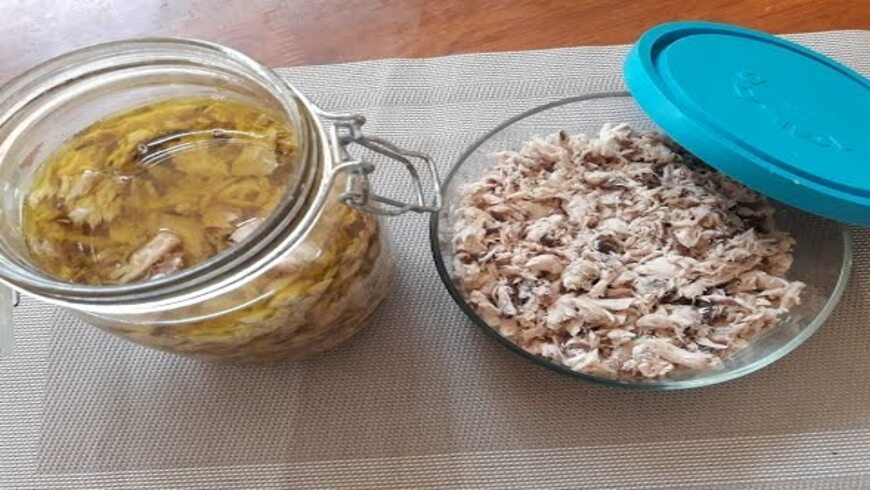 نأخد سمك الطون أو التونة وننزع الجلدة و السلسول أو العمود الفقري للسمك والشوك، نغسله جيدا و نفركه بالملح و نتركه يستقطر بضع ساعات. اولا ليلة كاملة