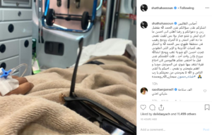 شذى نشرت صورة لها من داخل المستشفى تظهر المحاليل الطبية داخل أوردة اليد ولكنها لا تكشف عن وجهها وعلقت عليها عبر حسابها بموقع إنستقرام قائلة: أحبابي الغاليين اشكركم على سؤالكم عني الحمد لله بفضل ربي و دعواتكم و رضا أهلي اني احسن ما ادري ليش و شنو صار بية بس لقيت نفسي ما ده اقدر امشي و لا أتحرك ووجع رهيب في منطقة ظهري.