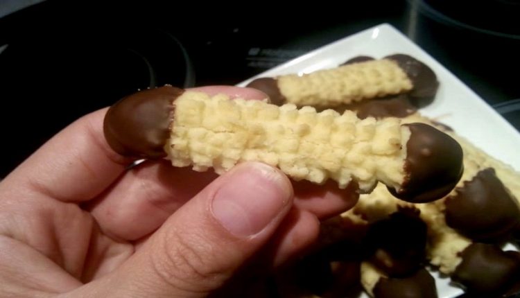 -نأخد القمع أو البوق يكون مسنن نعمل فيه العجين ونخرجو على شكل سيجار