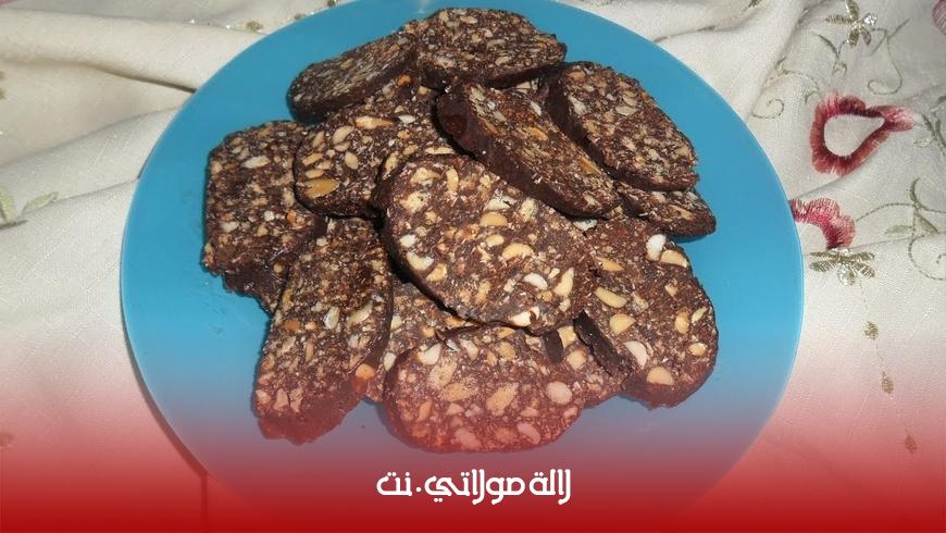• نذيب الشكلاط في بخار الماء ( حمام مريم ) ثم في إناء نضع الحليب المركز ونضيف له الشكلاط المذاب و مسحوق الحليب واللوز المحمر والفواكه الجافة أو المعسلة ،تمزج جميع المكونات ثم تلف في البلاستيك الغذائي على شكل عصيات، ثم تدخل الى المجمد ليلة كاملة ،بعدها تقطع على الشكل الاختياري وتقدم باردة بالف صحة وهناء نتمنى ان تجربوها فقط وان تنال إعجابكم .