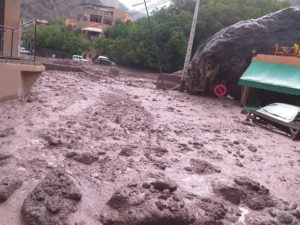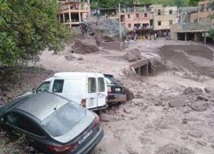 نجمت عنه خسائر مادية كبيرة.وحسب مصادر محلية وفيديوهات من عين المكان، فإن السيول أتت على عدد من الممتلكات، من بينهم سيارات وأشجار ومعدات مقاهي، كما قطع الوحل والأتربة العديد من الطرق والمنافذ.