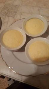 بعد ذلك نحضر اواني صغيرة مقاومة للحرارة و نضعها في طنجرة بعد ان نضع في الطمجرة فوطة كفراش للزليفات و نضع الماء المغلى في الطنجرة الى حدود ثلثي الأواني و نغلق الطنجرة لمدة 45 دقيقة بعد ذلك نتأكد من الطهي بعود الاسنان يجب أن تدخليه و يخرج جافا