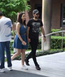 وظهر الثنائي بإطلالة كاجوال ملفتة، إذ ارتدى يلدريم تيشيرتًا أسود وبنطلونًا من اللون نفسه وحذاء رياضيًا أسود اللون، واضعًا قبعة ومُرتديًا نظارة شمسية، فيما بدت الباني بكامل جمالها مُرتديةً فستان جينز قصيرًا، بأزرار طولية على كامل الفستان مع حزام باللون الأسود، وتميز الفستان بقصة حرف الـV من ناحية الياقة.