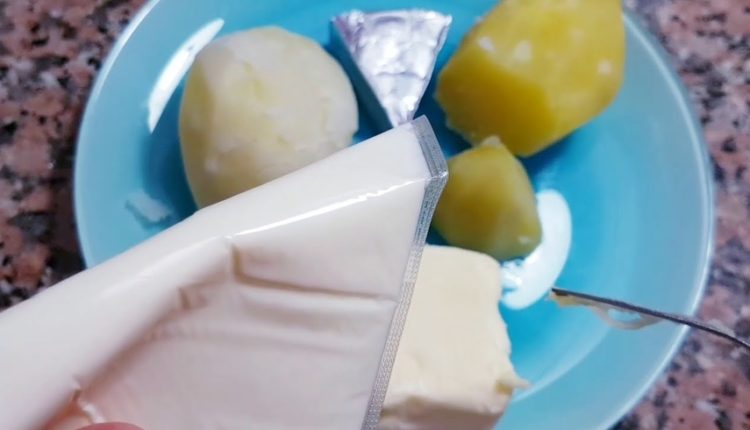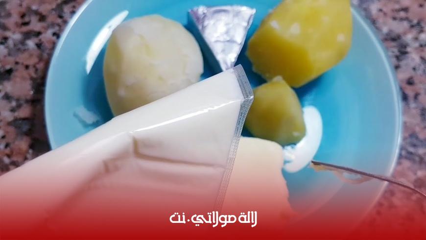 - المكونات :حبات بطاطس صغيرة الحجم+كاس من الحليب السائل او حسب الحاجة+قطعة فرماج مثلثة او ملعقة صغيرة من الزبدة+قليل من الملح
