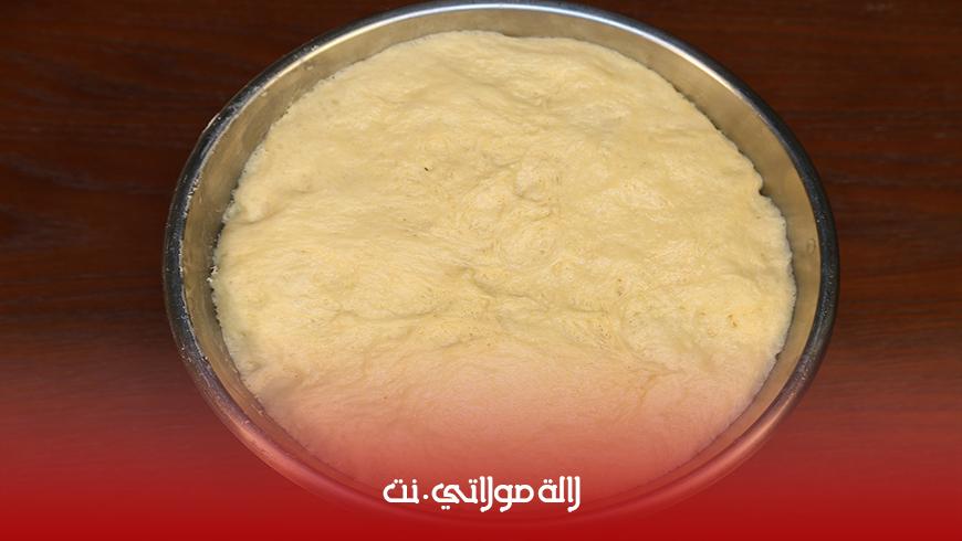 - ثم اتركي الخليط مغطى بالبلاستيك الغذائي داخل انية بعد مرور 15 دقيقة يمكنك الشروع في الخبز وسترين كيف سيكون هذا الخبز هشا وخفيفا.