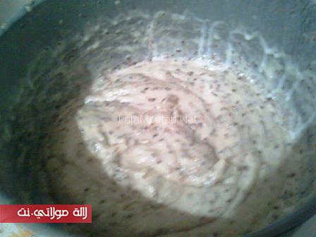 منين تخمر العجينة نضيفو كاس الحليب اللي دافئ و نخلطو مزيان و نعاودو نخليوها تخمر شوية