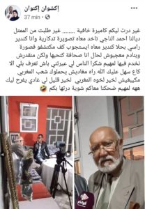 انتشرت صورة لإكشوان بمواقع التواصل الاجتماعي   وهو ويقوم بإستجواب الممثل أحمد الناجي. لكن الصورة لقيت انتقادات عديدة و الكل وجد أنه ليس لإكشوان مكان بالصحافة ولا يستحق أن يكون صحافيا حيث نعته المعظم بالتافه…