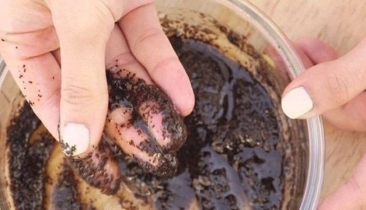 - المكونات:نصف كوب من القهوة+ثلاث ملاعق من زيت جوز الهند والزيتون+أربعة ملاعق من السكر يفضل السكر البني إن وجد
