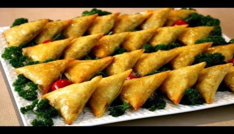 • نضع كمية من الخليط على ورقة الديول المدهونة بالزيت ثم نلفها على شكل مثلث (بريوة).