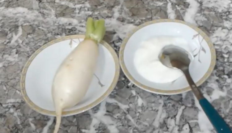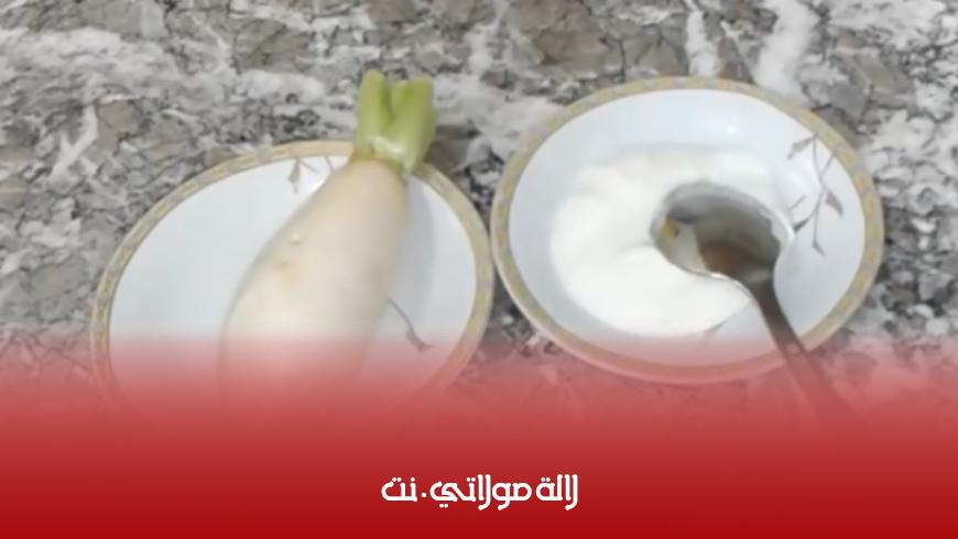 • المكونات : ملعقة من الياغورت الطبيعي + ملعقة من اللفت مطحون + ملعقة من العسل الطبيعي.