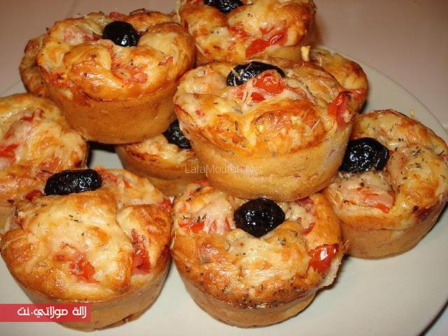 ونضع العجينة بالملعقة فيها ونرشها بالزعتر نضع الزيتون والفلفل ومكعبات الجبنة على الوجه مع محاولة غرسها بخفة في العجينة تخبز في الفرن لمدة ما بين 25 : 30 دقيقةعند خروجها من الفرن لا نحاول اخراجها من الورق الا بعد فترة وبالف هناء.