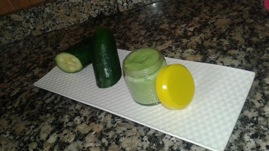 • المكونات : حبة من الخيار + ملعقتين من زيت جوز الهند + ملعقتين من نشا الأرز الناعمة