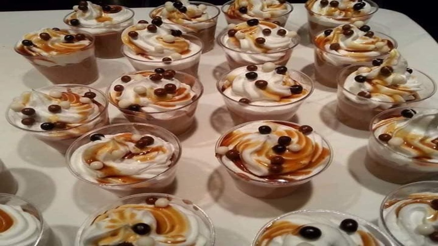 نضع ورقة الجيلاتين في ماء بارد نعمل الشكلاط تدوب من بعد نضع ورقة الجيلاتين في الشكلاط الساخن ونحرك حتى تدوب ونخليو الشكلاط جانبا يبرد نضرب الكريم السائل ضروري مايكون بارد باش يطلع لينا نضيف له نيستلي والماسكاربون والشكلاط تكون باردة مجرد ما العناصر تندمج نوقف التضراب نعمل الخليط في كؤوس صغيرة ندخلهم الثلاجة واحد 4 ساعات من بعد نزينهم بالكريم شانتي وحبيبات الشكلاط أنا عملت صوص كراميل فوق هاد إختياري وملاحظة من الأحسن نعملهم يوم قبل التقديم وبالصحة والراحة