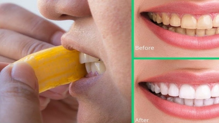 - إذا كنت تريدين إتباع هذه الطريقة، ننصحك باستخدام قشرة الموز من الداخل، وفرك أسنانك ولثتك بها، لمدة دقيقتين، وبعدها، اتركي الطبقة التي تتشكل على أسنانك لمدة 10 دقائق، قبل أن تغسلي فمك بمعجون الأسنان أو بالماء الفاتر مع الملح.
