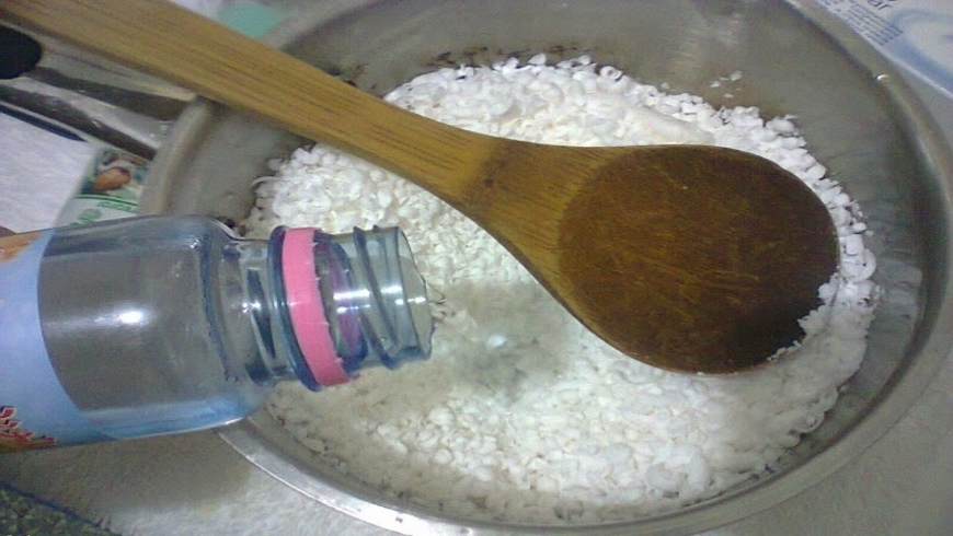 - المكونات :نصف صابونة دوف أو أي صابونة أخرى بدوت رائحة+مبشور قشر ليمونة خضراء+3 ملاعق من الملح+ملعقتين من الكركديه مطحون أو ورد مطحون+ملعقة من ملح البحر وهي اختيارية+ملعقة من بيكاربونات الصوديوم+يمكنك إضافة ملعقة من الأرز مطحون