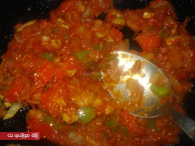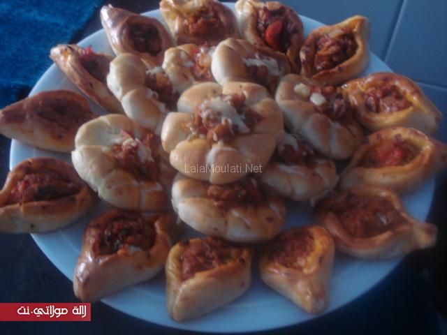 الحشوة بصلة وفلفل احمر واخضر مشحرين ف ملعقة الزيت وملح وابزار وكمون ورشة سكنجبير كنضيف عليهم ملعقة مطيشة مركزة ونضيف التون الي بغيت عيني ميزاني ممكن شوية الهريسة على حسب دوقك