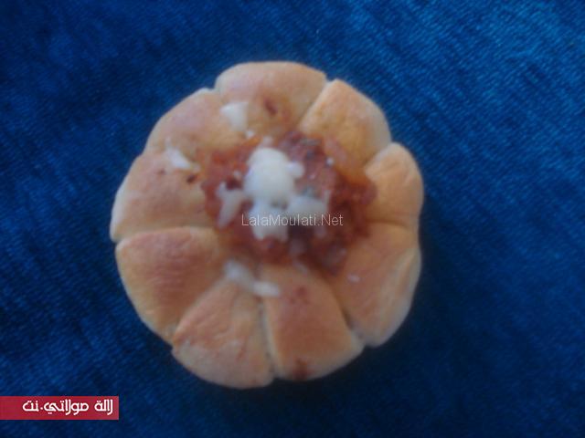 ملي نعمل الحشوة ف العجينة نرش شوية زعتر محكوك وممكن شوية الجبن من فوق