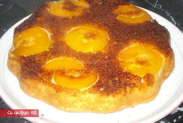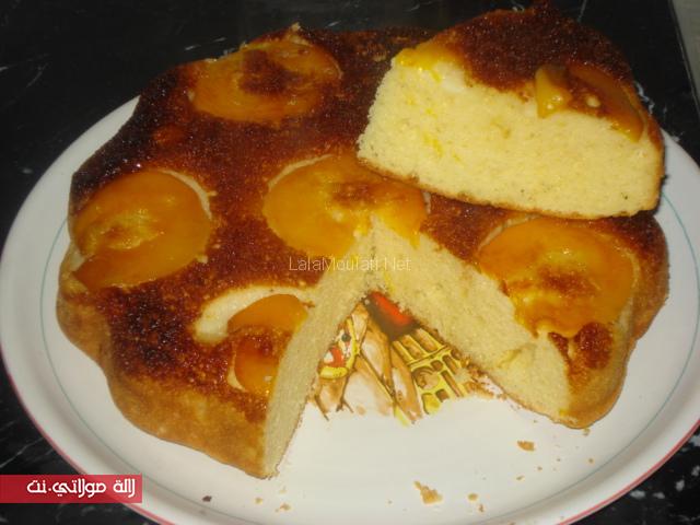 كنذهنو لمول بالزبدة ونخويو لكراميل ونستفو قطع الفاكهو مدورين ومن بعد خليط لكيك وندخلوها لفرن 180 درجة 47 دقيقة وبالصحة كتجي باردة ومنعشة مممممممم وممكن ملي تخرج نسقيوها بالسيرو د الخوخ ادا عملنا الخوخ او السيرو د اناناس ف حالة الاناناس او البرتقال وخليوها تبرد مزيان كتجي لديدة