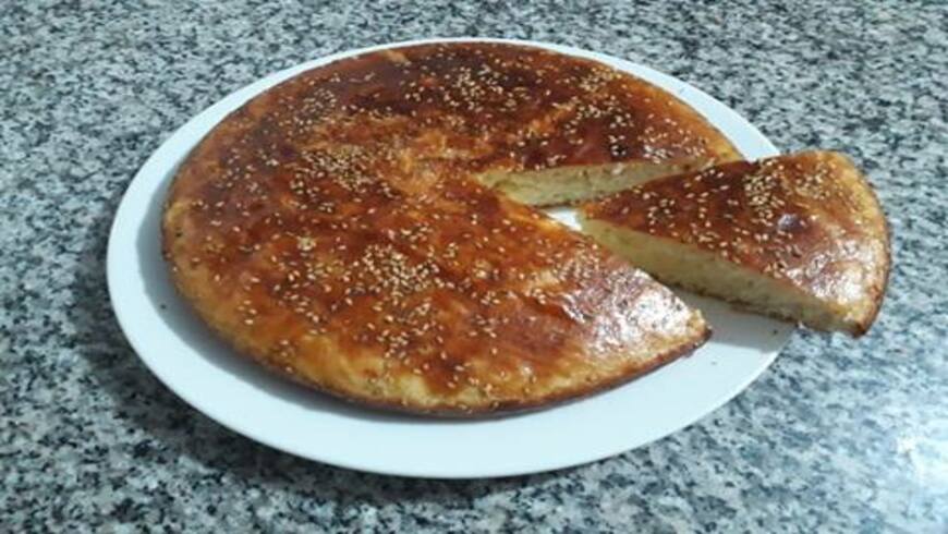 ندهن وجه العجين بصفار البيض مخلوط مع قطرات من الخل ويرش بالزنجلان او حسب الرغبة