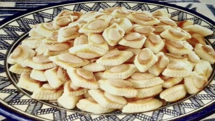 كنحتاجوا للتزيين لوز كنمسحوه مزيان من الغبار اللي كيكون فيه وكنحمروه في الفران. كنسرحوا العجينة بالمدلك بين قطعتين من البلاستيك حتى تصبح رقيقة تم نقطعوها بمرشم دائري صغير او اي مرشم كتفضلوه تم كندهنوا قطعة الحلوة ببياض البيض تم نضع وسطها حبة اللوز اللي حمرنا ونغلقوا عليها ونستمروا بنفس الطريقة حتى نكملوا العجينة تم كندهنوا وجه الحلوة ببياض البيض ونزينها برقائق اللوز الايفيلي مهرمشين او الزنجلان او اللي حبيتوا لكم حرية الاختيار تم كندخلوها للفرن اللي كيكون على درجة حرارة متوسطة حتى كتطيب وتحمر وبالصحة و الراحة
