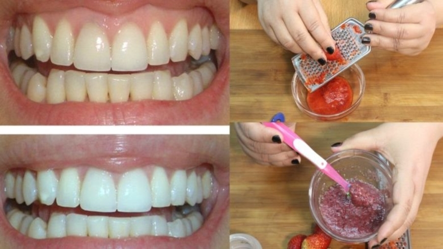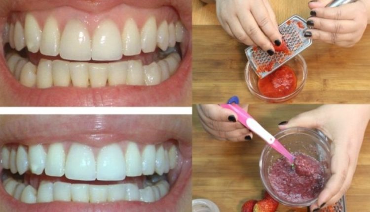 • قومي سيدتي بدعك حبة من الفراولة وأضيفي لها ملعقة من بيكاربونات الصوديوم واخلطي جيدا إلى أن تتجانس ثم خذي القليل على فرشاة الأسنان وافركي بها أسنانك جيدا لمدة دقيقتين بعدها اشطفي يمكنك استبدال الفراولة بالقليل من الفحم في حالة عدم وجودها في موسهما .