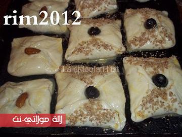 ونجمعو الاطراف ونتبتوهم بحبة لوز ونزلوهم في لاطة الفرن وندهنوهم بالبيض