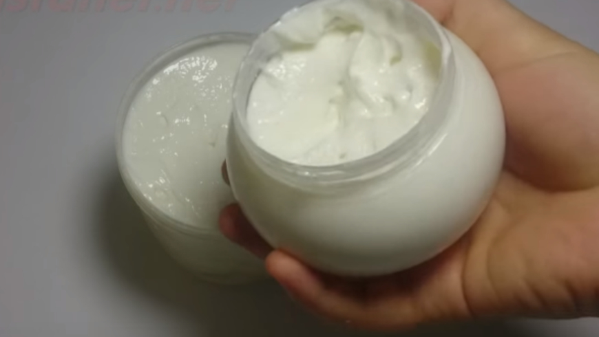 • يضاف كل من كمية الأوكسجين السائل والبودرة البيضاء الخاصة به إلى باقي المكونات في القدر المعدني، مع الاستمرار في التحريك والتقليب، حتى يصبح المزيج بقوام كريمي ثقيل.يسكب المزيج في الوعاء البلاستيكي، ويترك في الثلاجة إلى أن يبرد،و طريقة استخدام يخرج المزيج من الثلاجة قبل فترة من البدء في استخدامه.
