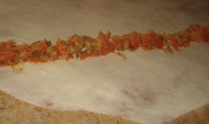 في مقلاة نضع جميع مكونات الحشو ونتركها على نار هادئة حتى تطهى