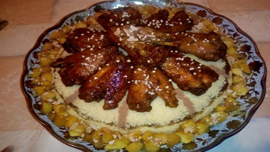 طبعا التقديم يبقى حسب الاختيار و يمكن تعويض الدجاج بقطع اللحم