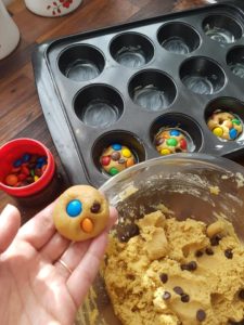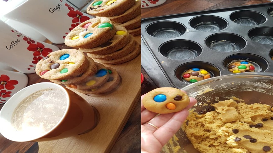 تخلط جميع المكونات ثم تترك في الثلاجة لمدة نصف ساعة تم تشكل كويرات صغيرة وتزين بحبيبات الشكلاطة