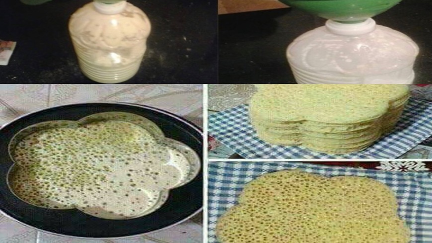 تحطي المواد الجافة هي الاولى بعد الماء وتحركي القرعة مليح وعودي افتحي القرعة وغلقيها وخليها 15د تخمر بعد حطي المقلاة امسحيها بونجة قطنية بزبدة باش مايلسقش خظي القرعة وافتحي الغلقة بشوية فرغي في مقلاة وسرحيها شوية بلمغراف وخليها طيب وبصحة وراحة