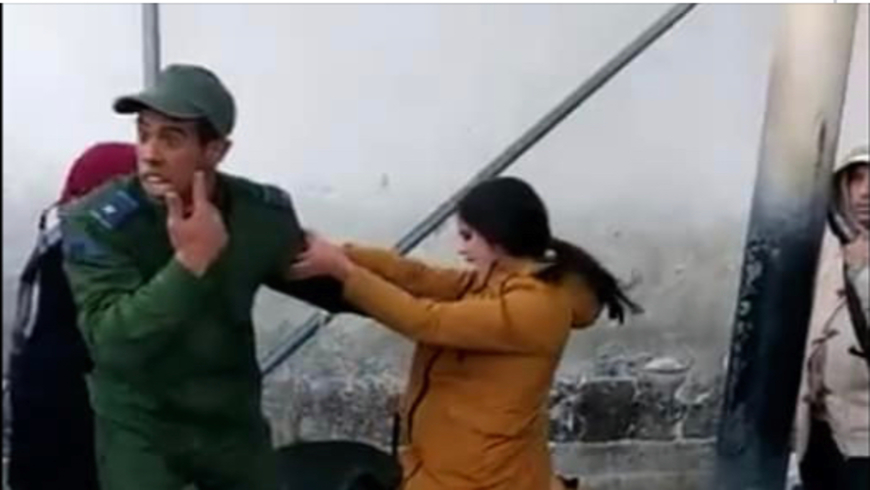 والتف بالفتاة 5جمركيين إذ أجلسوها بالقوة، فيما حاولت المرأة مساعدتها من أجل منعهم من القبض عليها، وظل الرجل مرميا على الأرض لا يستطيع النهوض.