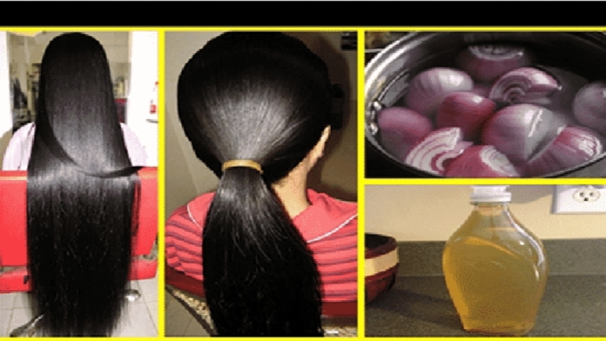 اخلطي ماء البصل جيدا مع الزيت،ثم وزعيه على جذور الشعر جيدا مع التدليك المستمر لمدة 5 دقائق،ضعي النايلون على الشعر واتركيه لمدة 10 دقائق،بعد ذلك يغسل الشعر جيدا بالماء والشامبو.