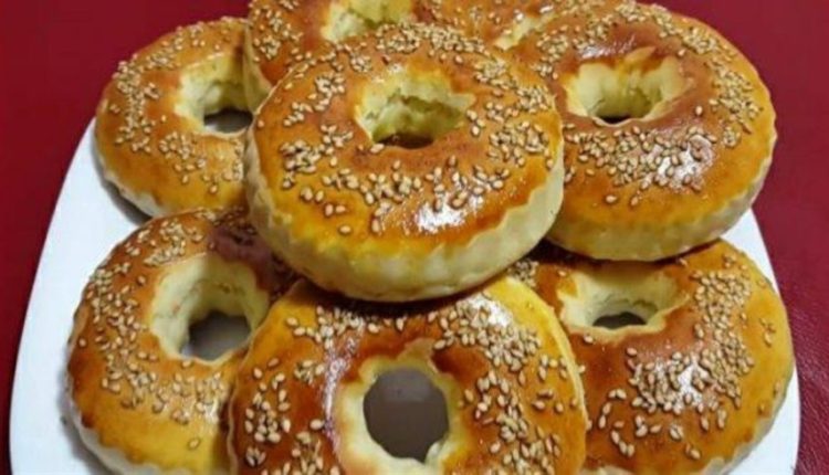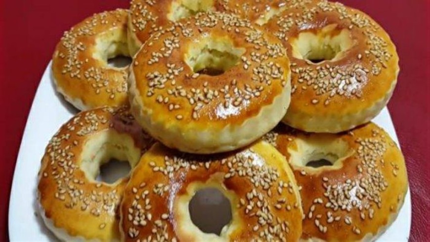 بعد ذلك نبسكها و نقطها على شكل كعك نتركها تختمر جيدا و تدهن باصفر البيض المضاف اليه قطرة من الخل و نزين بالسمسم و تطهى في الفرن.