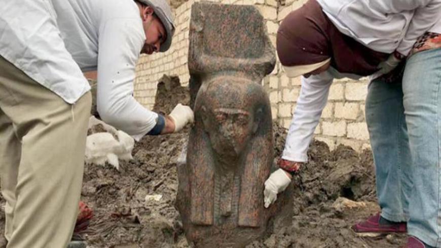 وزارة الآثار المصرية تعلن عن اكتشاف تمثال ملكي صغير الحجم على هيئة أبوالهول بجبانة تونا الجبل بمحافظة المنيا جنوب مصر.