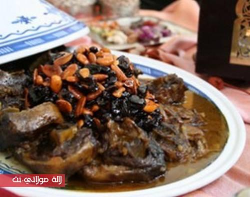 يقطع اللحم قطع وزن القطعة 150غ تقريبا، يغسل ويقطر. يخلط رأس الحانوت بالزنجبيل و الزعفران والفلفل الأسود، وقليل من الماء. يؤخذ نصف هذا الخليط وتدهن به قطع اللحم، وتوضع هذه القطع أولا بأول في الطنجرة. تملح ويضاف إليها الزبدة و اللوز المقشور و البصل المبشور. تغطى بالماء و نغطي الطنجرة و نتركها تنضج مع تحريكها من حين لآخر. يضاف الماء في أثناء الطبخ إن اقتضت الحاجة لذلك. في هذه الأثناء، ينقى الزبيب ويغسل ويترك لينقع في النصف الباقي من خليط التوابل حينما يوشك اللحم أن ينضج، يضاف إليه العسل و الزبيب و القرفة، ثم ترفع الطنجرة من على النار عندما يصبح اللحم هشا و المرق سميكا. نضع اللحم في صحن مع اللوز والزبيب ويصب من فوق المرق المعسل.