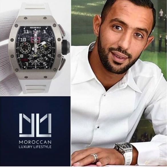 لاعب كرة القدم المغربي مهدي بنعطية يرتدي ساعة فاخرة، من ماركة ريتشارد ميل، يُقدر ثمنها بحوالي 130 مليون سنتيم.