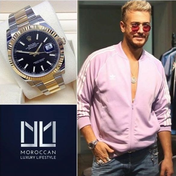 الفنان سعد لمجرد يرتدي ساعة فاخرة من نوع رولكس، يبلغ سعرها حوالي 12 مليون سنتيم.