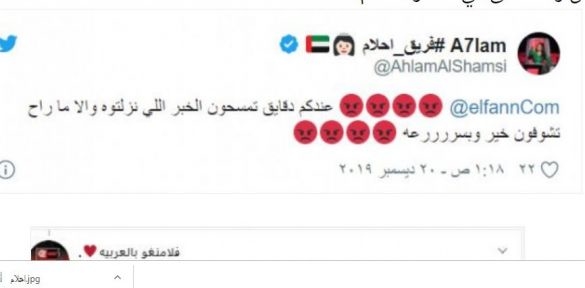 وغردت أحلام عبر حسابها على “تويتر” قائلة: “عندكم دقايق تمسحون الخبر اللي نزلتوه والا ما راح تشوفون خير وبسررررعة”.